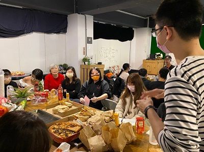 在活動開始前一小時,提早到的少年共同將多道年菜加熱並擺盤,隨著一道道年菜的上桌,氣氛也逐漸熱絡了起來;社工與少年們一起享用美味年菜,過程中社工引發一些生活議題,讓與會的少年能彼此交談,增加熟悉感,然仍可觀察到少數幾位少年因不習慣在團體中人際互動,因焦慮感而低頭滑手機、徘迴在社工們的周圍。晚餐後的破冰遊戲,有助於少年們逐漸降低焦慮、融入團體,幾位少年發揮其熱情、主動特質,炒熱氣氛。