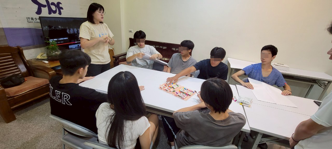 114 年 9 月至 11 月,本會東區工作站於自立宿舍辦理六場次「聊心吧—情緒支持團體」,由雲子綺社工師帶領,共服務超過三十人次。團體以「情緒覺察 × 人際互動 × 自我認識」為主軸,透過多元、活潑的活動,在安全溫暖的氛圍中,陪伴少年練習理解自己、理解他人,也為宿舍生活累積更多正向連結。
