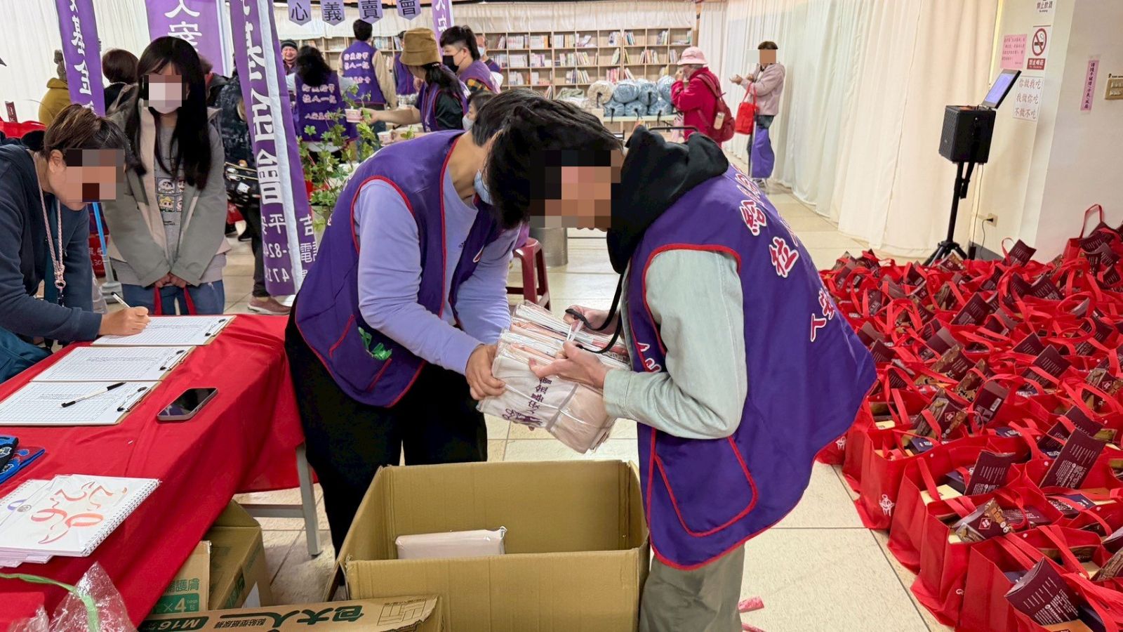 活動初期,大家對於志工服務仍感到些許陌生與緊張,但隨著任務展開,大家逐漸投入各自的工作。有的負責資料登錄與電腦操作,有的協助身分證掃描與確認,也有人幫忙整理與分裝防寒物資。透過分工合作,每個人都在自己的位置上盡一份心力。