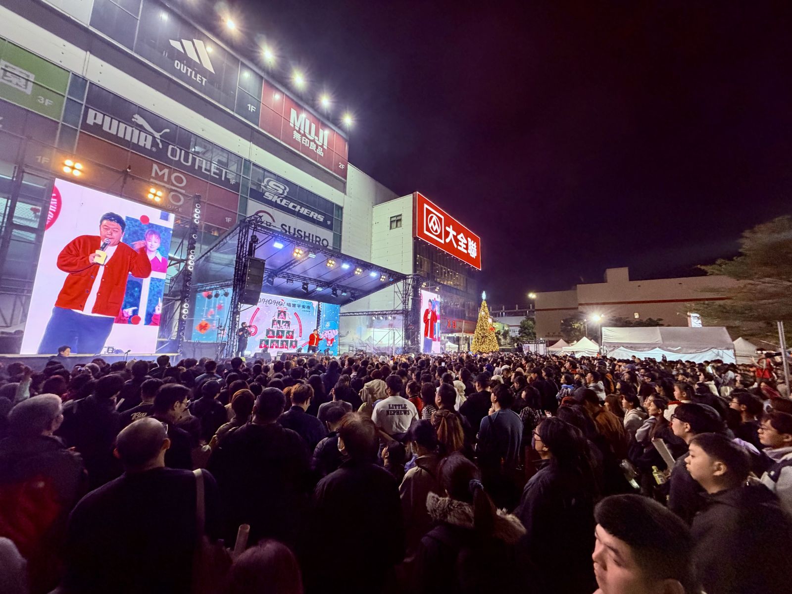 聖誕夜於大全聯內湖店,蘇慧倫、Energy、丁噹、白安、鼓鼓呂思緯、蕭秉治輪番獻唱,搭配 10 米高巨型聖誕樹、浪漫雪景與熱鬧市集,在必應創造的打造下,共同點亮專屬平安夜的璀璨舞台。