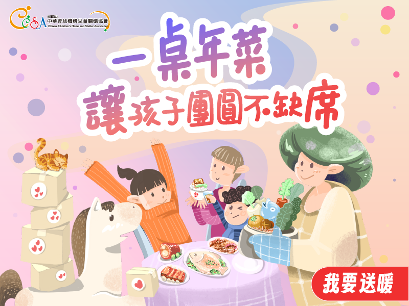 中華育幼機構兒童關懷協會(CCSA)目前服務近 1,500 位孩子,其中有許多無法返家的自立少年與逆境兒少。歲末年終,我們將在各地工作站與宿舍,陪伴這些孩子一起過年。為他們準備新衣、送上祝福紅包,圍坐共享年菜,讓孩子在團圓中感受到「有人等我回家」的溫暖與歸屬。