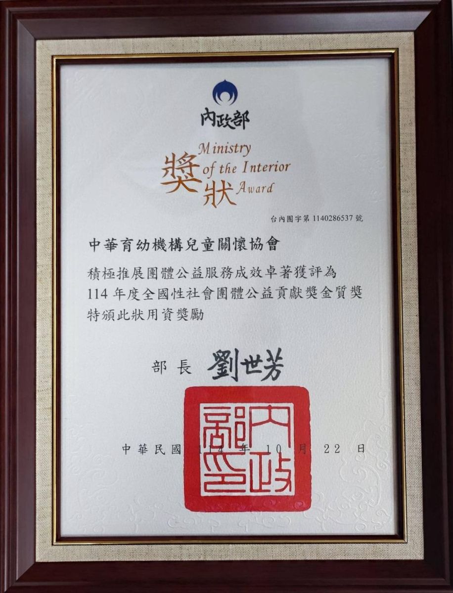 2025 內政部 【114年度全國性社會團體公益貢獻金質獎】 |